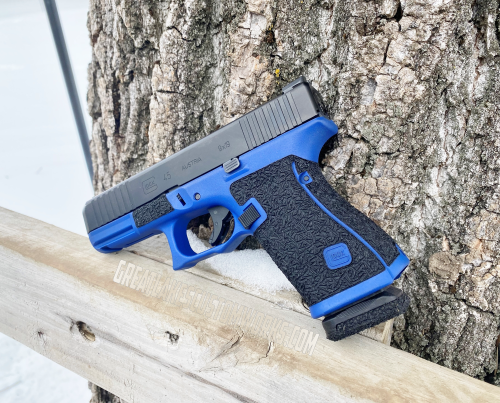 It is not possible to stipple over Cerakote, or other coatings.  These coating must be meticulously removed from the area to be customized without going outside of those areas at all.  This is a very detailed, and time-consuming process.  As such, Cerakoted frames / receivers require this additional fee when other framework is being done.